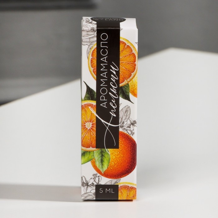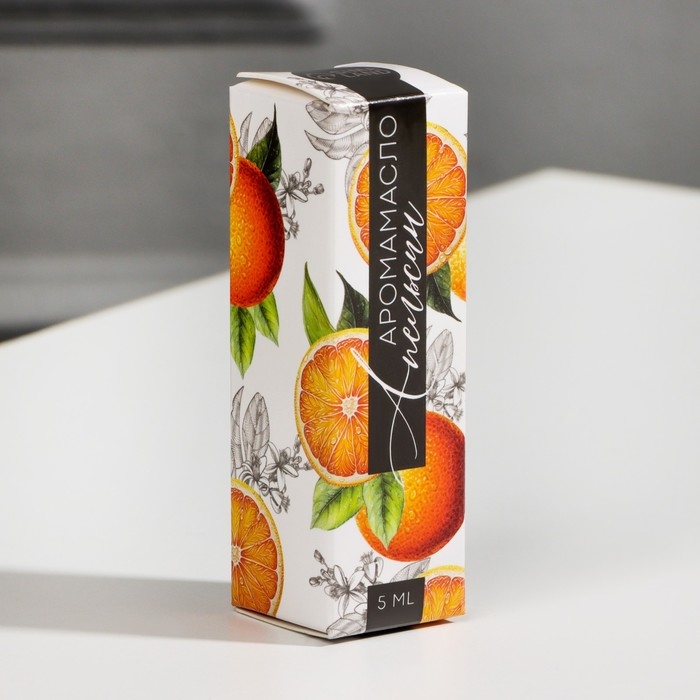 Бутылочка объемом 10 мл заключена в красивую картонную коробочку с изображением апельсина.