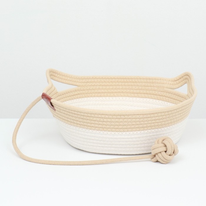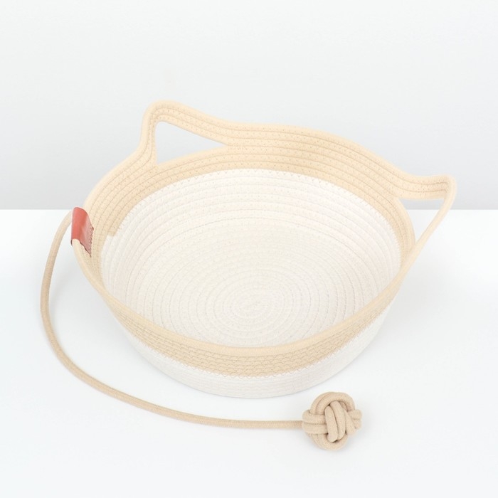 Лежанка для кошек и собак с бортиками из натуральных, гипоаллергенных материалов имеет плотную текстуру, сохраняет форму и имеет устойчивую основу.Лежанки имеет круглую форму и идеально подойдет для кошек, котов и собак мелких пород, а также грызунов. Плетеные бортики выдержат питомца весом до 5 кг.Лежанка изготовлена из натурального хлопка и рогоза. Модель представлена в двух вариантах расцветок.Сделанная с любовью и заботой лежанка ручной работы, специально для вашего любимца, не имеет химическую пропитку, что обеспечивает гипоаллергенность.Благодаря материалу и особому плетению, лежанка воздухопроницаемая, что позволяет не перегреваться животному даже в самый жаркий день.Кровать имеет высокие бортики и позволит стать местом не только для отдыха, но и для игр.А также ваш питомец сможет использовать ее как когтеточку.Лежанка оснащена плетеным мячиком на канате, который не заставит вашего питомца скучать, и разнообразит досуг, кошачьи ушки в изголовье лежака подойдут как для самостоятельных игр, так и для совместных, например игра в перетягивание. Веревочное плетение не даст мячику потеряться и всегда будет под «Лапкой», а форма игрушки и косички выполняют жевательную функцию. Игрушка поможет поддерживать гигиену полости рта питомца и поспособствует укреплению десен. Лежанку можно стирать в машинке на деликатном режиме, что сэкономит ваше время на уход за изделием.Лежанка идеально подойдёт для летнего жаркого сезона дома или на даче.
