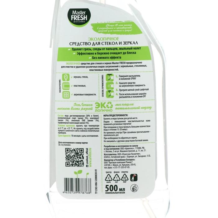 Экологичный спрей Master FRESH для стёкол, зеркал, пластика, 500 мл