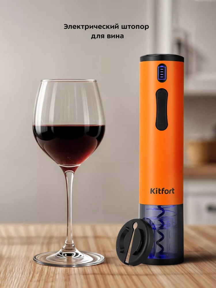Электрический штопор Kitfort KT-6032 поможет легко, быстро и безопасно открыть бутылку вина. Процесс открывания бутылки станет простым и займет всего несколько секунд. Также вам больше не придется прикладывать дополнительные усилия, как это часто бывает при использовании обычного штопора. Электрический штопор предотвращает риск пролить вино или пораниться. С электрическим штопором вы можете эффектно открыть вино для подачи к столу и удивить гостей.
