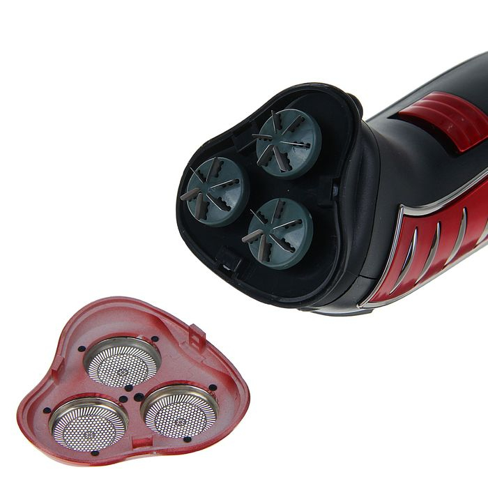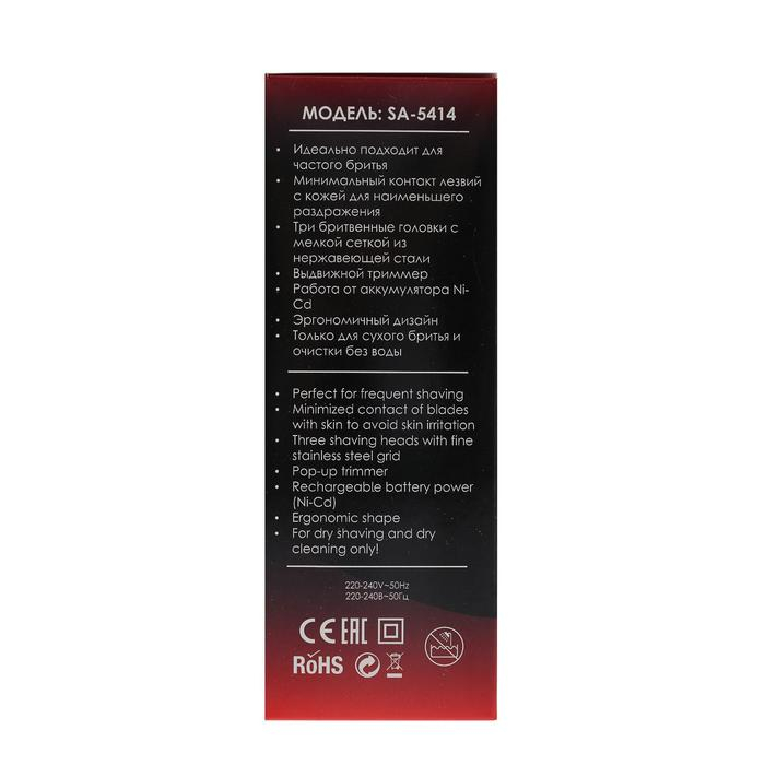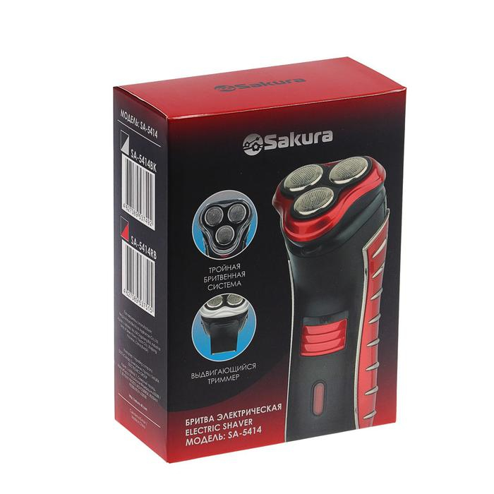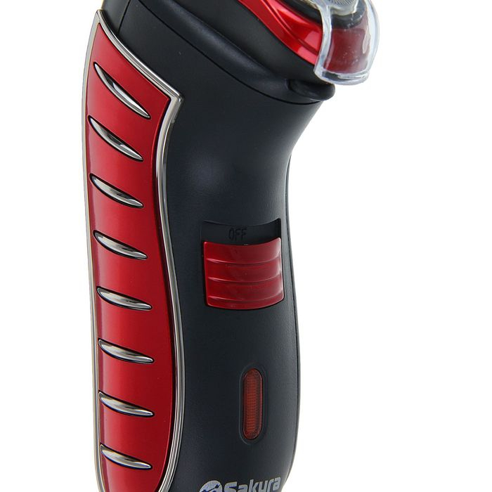 Электробритва Sakura SA-5414RB, 3 Вт, сеточная, 3 плавающие головки, триммер, АКБ, красная