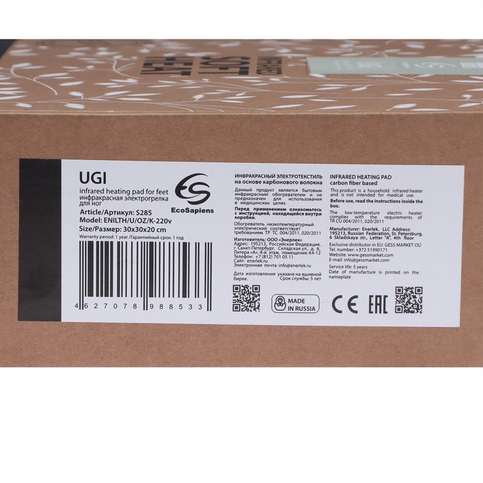 Электрогрелка для ног EcoSapiens S285 Ugi, электросапог, 30х30х20 см