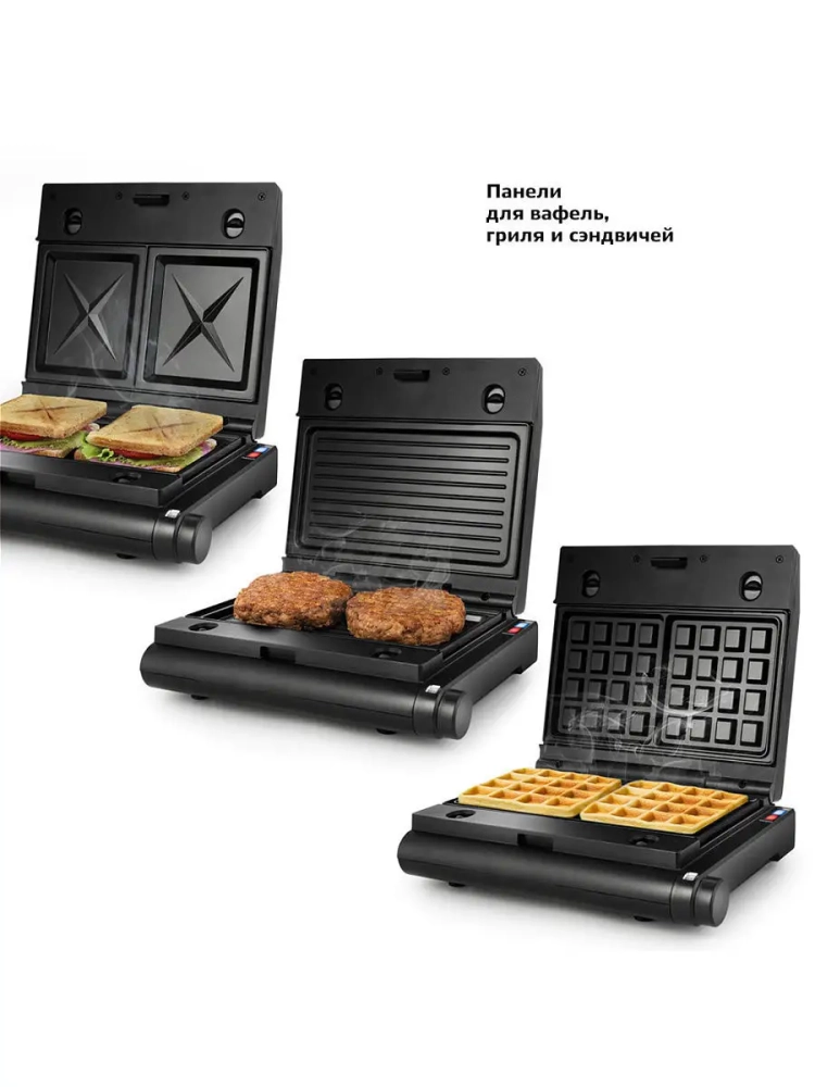 Контактный электрический Kitfort КТ-1632 мини-гриль позволяет приготовлять стейки, овощи, рыбу, сосиски, котлеты для гамбургеров и многое другое. Сменные панели расширяют возможности гриля. Система крепления на защелках позволяет легко заменять панели. Используйте панели для сэндвичей при приготовлении горячих бутербродов, сэндвичей, тостов и других блюд. При выпекании толстых вафель используйте панели для вафель. Конструкция гриля позволяет его использовать в двух режимах. В двухстороннем режиме он закрывается крышкой, и продукты готовятся одновременно с двух сторон. В одностороннем режиме крышка откидывается на 90 градусов, и гриль превращается в жаровню. Для приготовления используется только нижняя поверхность.