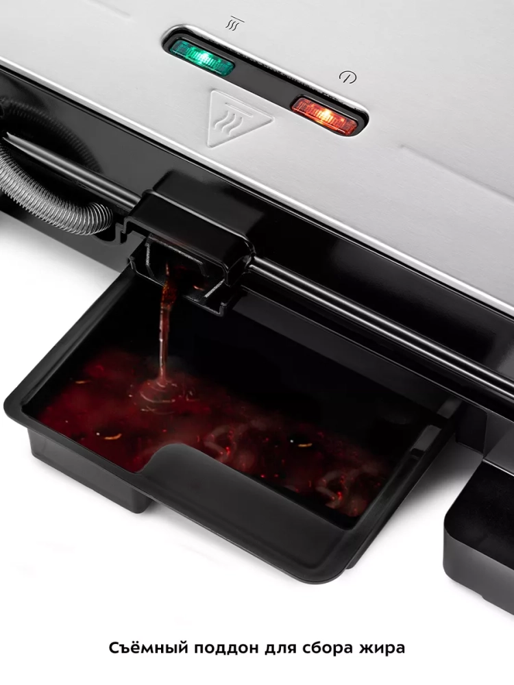 Данная модель оснащена поддоном для слива жира и сока, которые выделяются в процессе приготовления продуктов.