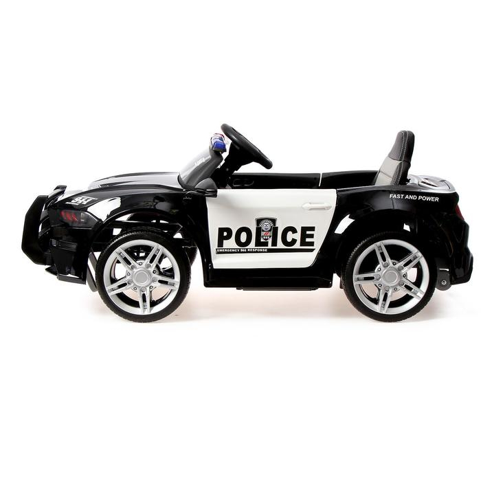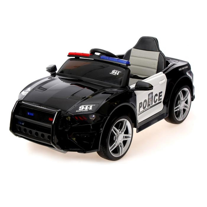 Электромобиль POLICE, EVA колеса, кожаное сиденье, цвет чёрный глянец