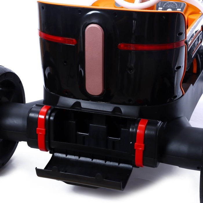 - Электромобиль оснащён пультом дистанционного управления, благодаря которому родители могут контролировать скорость и направление движения игрушки. Это очень удобно, когда ребёнок ещё маленький и не может самостоятельно управлять машинкой.