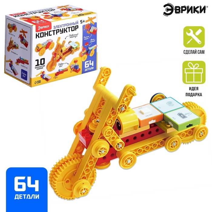 Электронный конструктор, 64 детали, 10 вариантов сборки