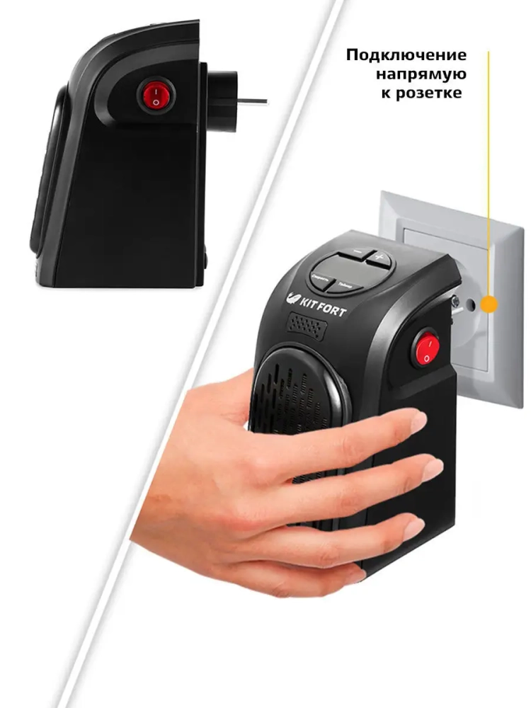 Электрообогреватель Kitfort KT-2701 представляет собой компактный отопительный прибор, который подключается прямо в розетку. Прибор способен прогревать небольшие помещения за весьма короткое время. У прибора есть энергосберегающий керамический нагревательный элемент. Керамический нагревательный элемент - это обычный ТЭН, где нагревательная спираль заключена в керамический корпус. Принцип обогрева здесь заключается в принудительной конвекции, когда нагревательный элемент умеренно обдувается воздухом и нагретый воздух распространяется по помещению. Мощность 370 Вт.