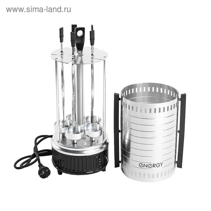 Электрошашлычница ENERGY НЕВА-1 представляет собой цилиндрический корпус, в котором размещена жаровая камера с нагревательным элементом, защищённым стеклянной трубой. В эту камеру в вертикальном положении устанавливают шампура. За раз можно поместить до 5 штук.
