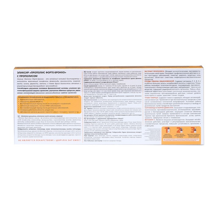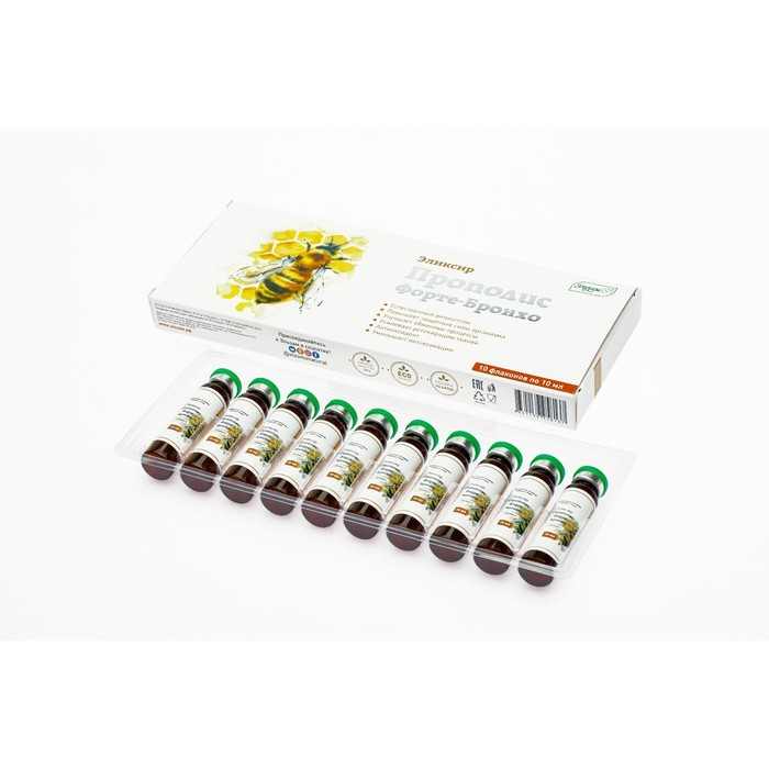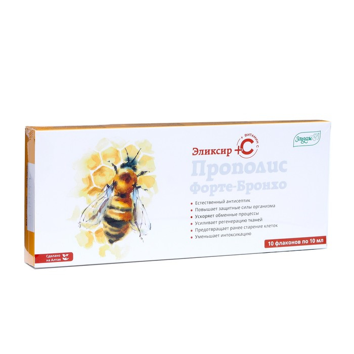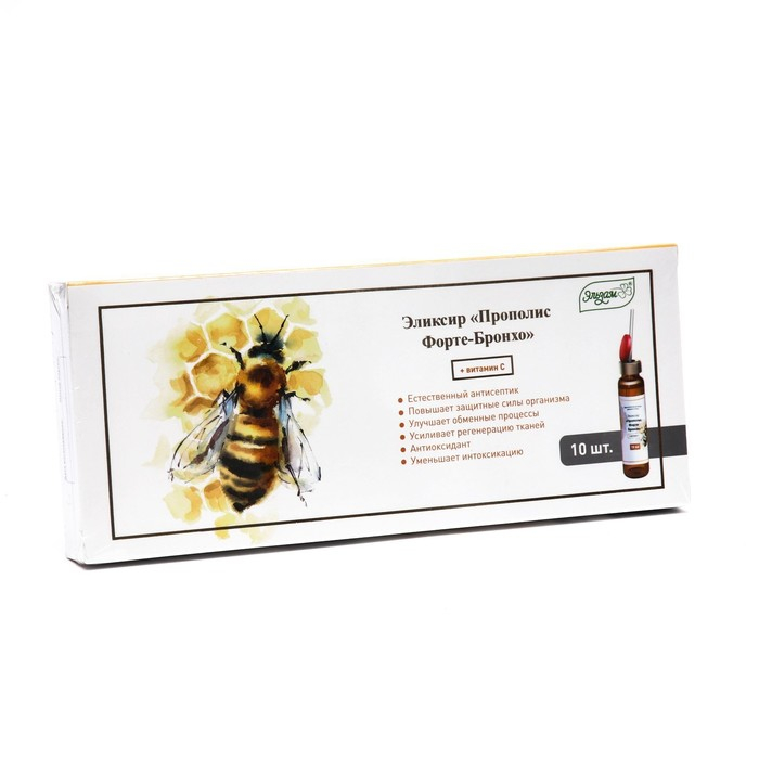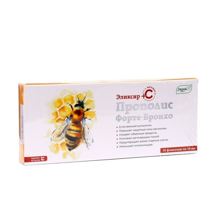 Эликсир «Эльзам. Прополис Форте-бронхо» с прополисом и витамином С, здоровые лёгкие, 10 флаконов по 10 мл