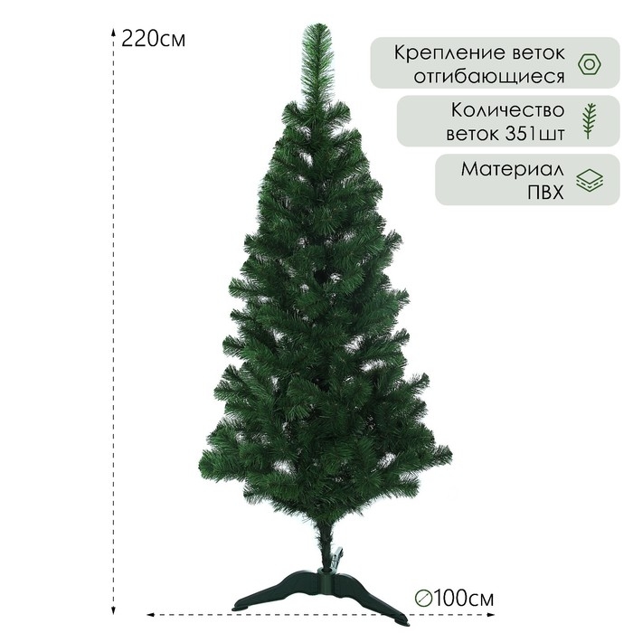 Ёлка искусственная "Уральская" 220 см, d нижнего яруса 100 см, 351 ветка