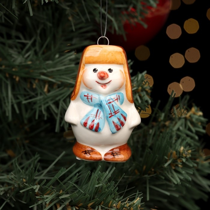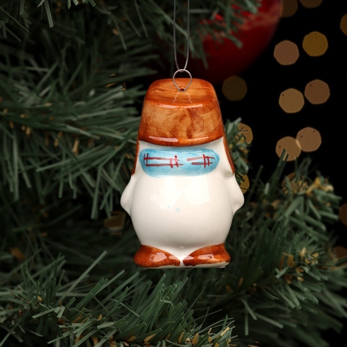 Ёлочная фарфоровая игрушка "Снеговик в шапке", 7 см