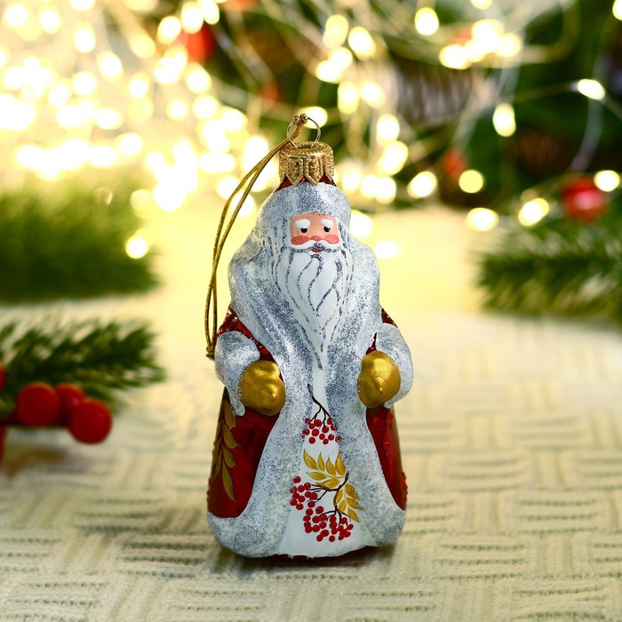 Ёлочная игрушка "Дед Мороз" рябинка, ручная роспись, 13 см