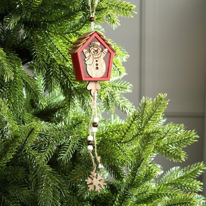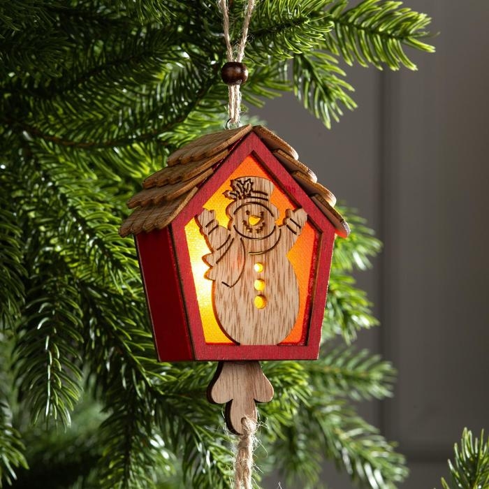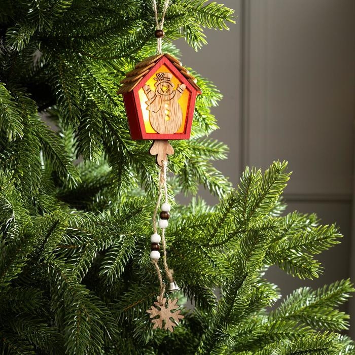 Ёлочная игрушка «Домик со снеговиком», от батареек, свечение тёплое белое