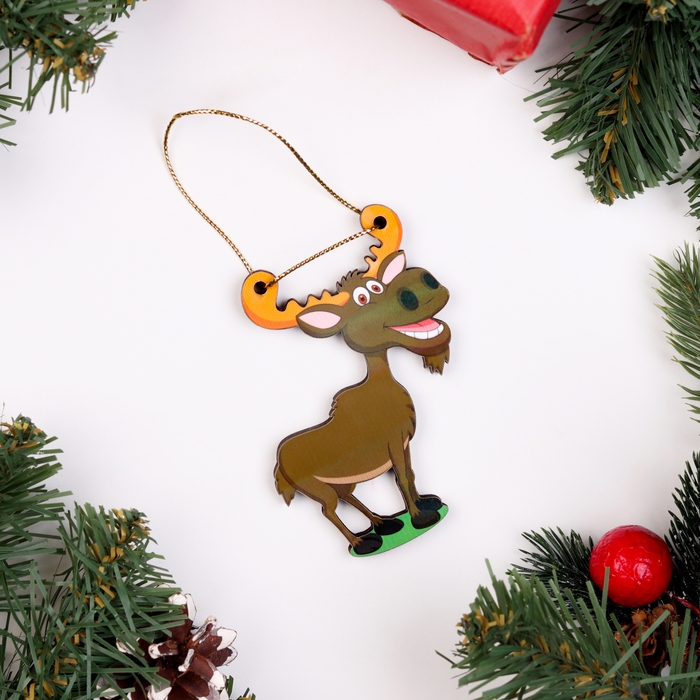 Ёлочная игрушка двусторонняя "Лось", 9х6 см