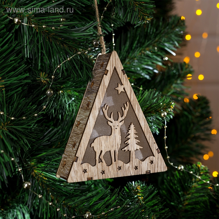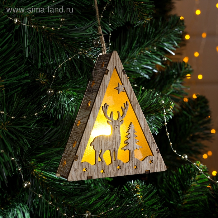 Ёлочная игрушка «Олень и ёлка», от батареек, свечение тёплое белое