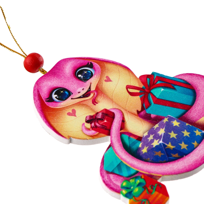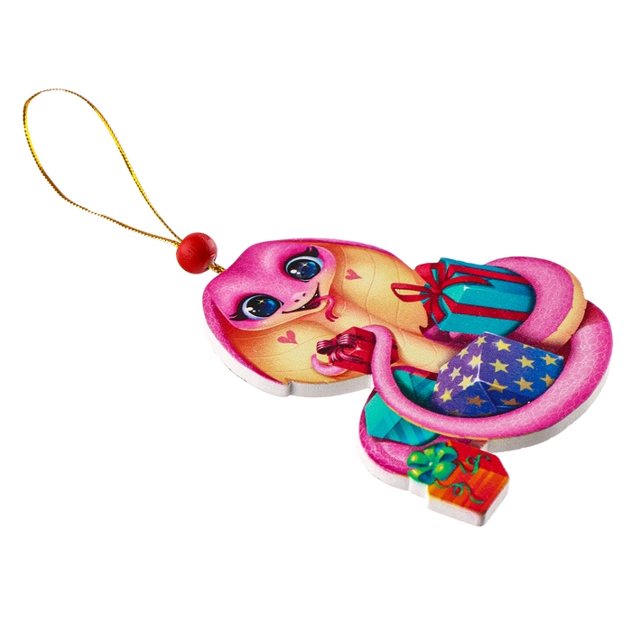 Ёлочная игрушка - подвеска деревянная «Новый год! Змея с подарками», символ года 2025