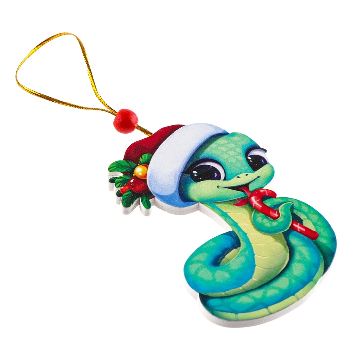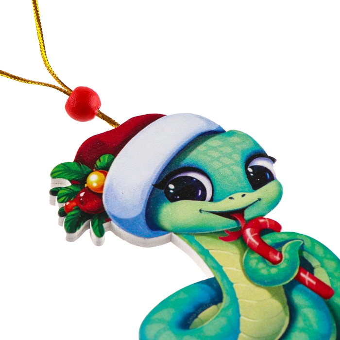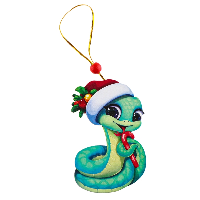 Ёлочная игрушка - подвеска деревянная «Новый год! Змея в шапке», символ года 2025