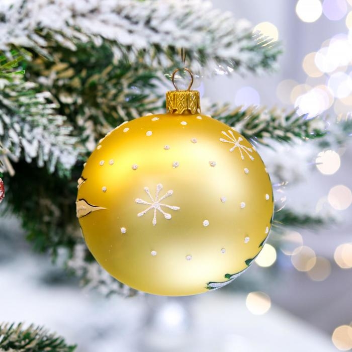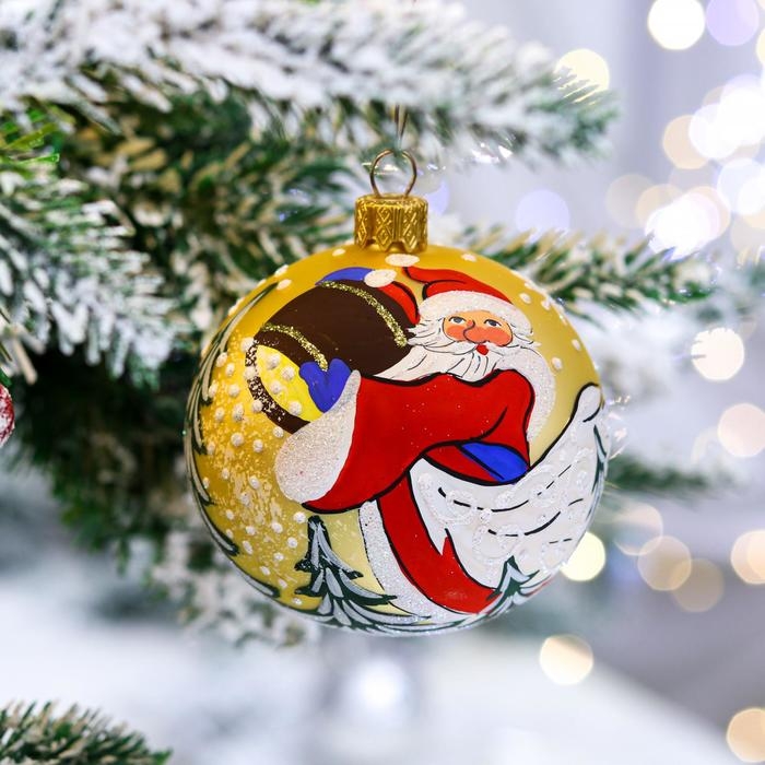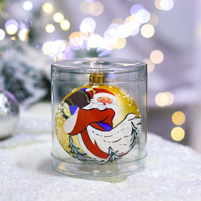 Ёлочная игрушка Шар «Дед Мороз в лесу», 80 мм, ручная роспись, стекло