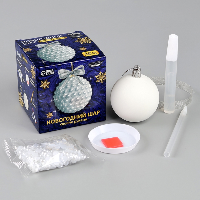 Ёлочная игрушка своими руками на новый год. Декор ёлочного шара полубусинами «Белый», новогодний набор для творчества