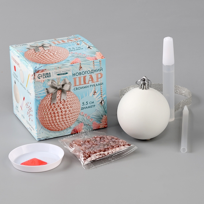 Ёлочная игрушка своими руками на новый год. Декор ёлочного шара полубусинами «Бежевый», новогодний набор для творчества