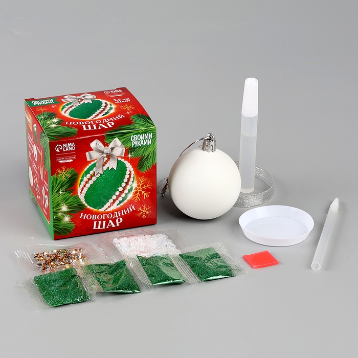 Ёлочная игрушка своими руками на новый год. Декор ёлочного шара полубусинами и блестками «Белый и золото», новогодний набор для творчества