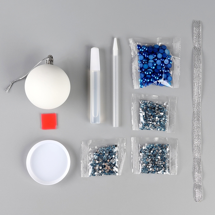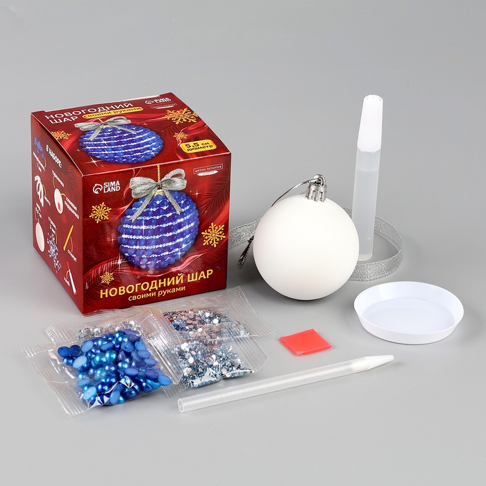 Ёлочная игрушка своими руками на новый год. Декор ёлочного шара полубусинами и блестками «Синий и голубой», новогодний набор для творчества