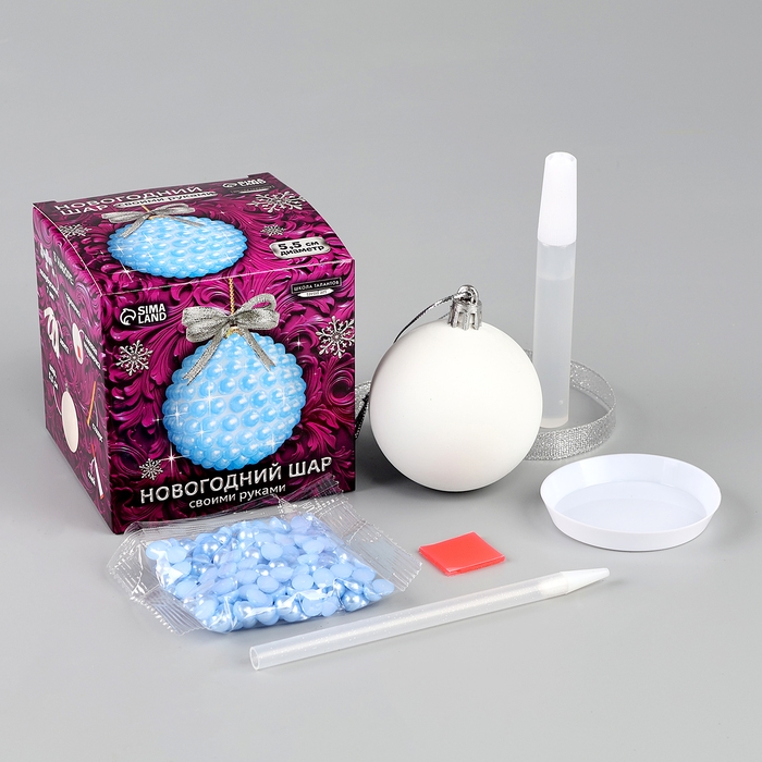 Ёлочная игрушка своими руками на новый год. Декор ёлочного шара полубусинами «Нежно-голубой», новогодний набор для творчества