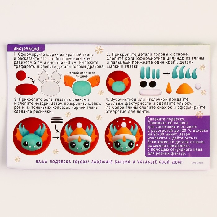 Ёлочная подвеска из полимерной глины своими руками на новый год «Дракоша в шапочке», новогодний набор для творчества