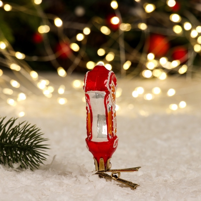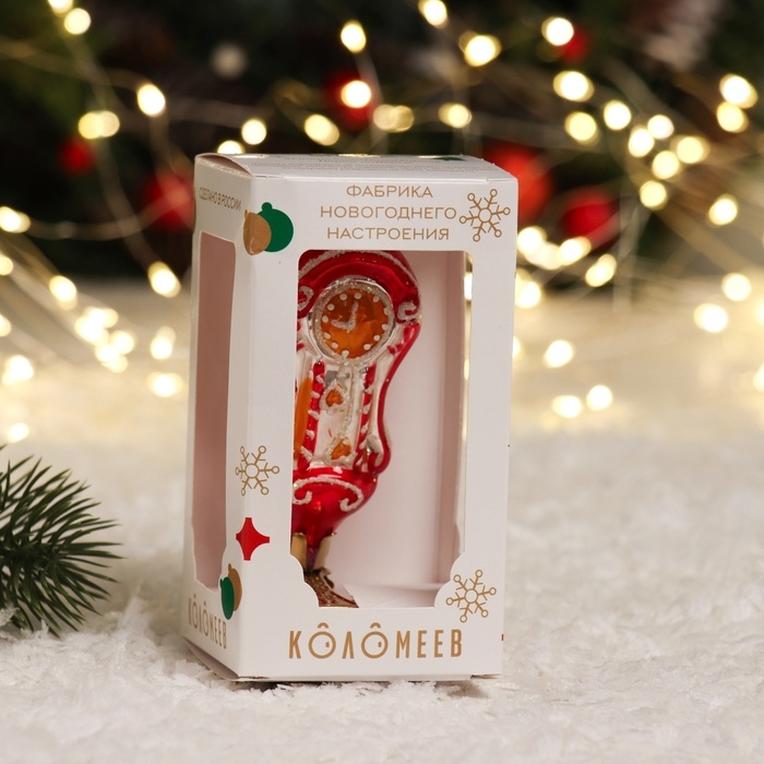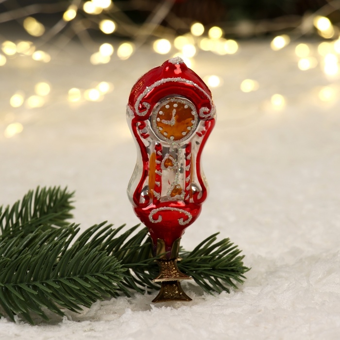 Ёлочное украшение "Часы на прищепке" красный, в подарочной упаковке