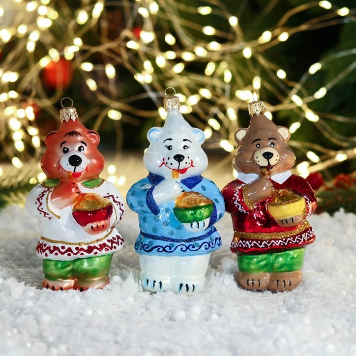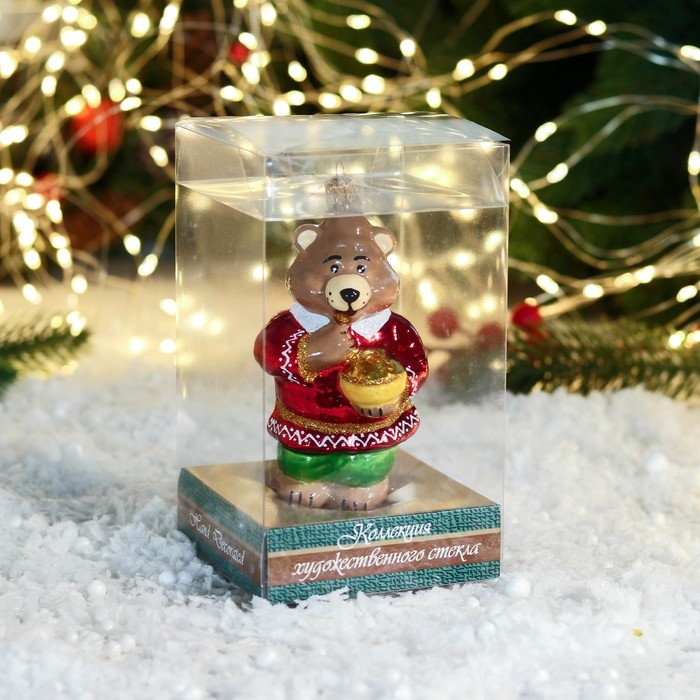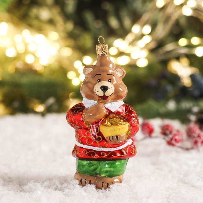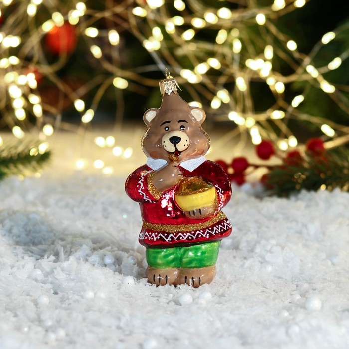 Елочное украшение "Медведь с мёдом" 12 см, микс