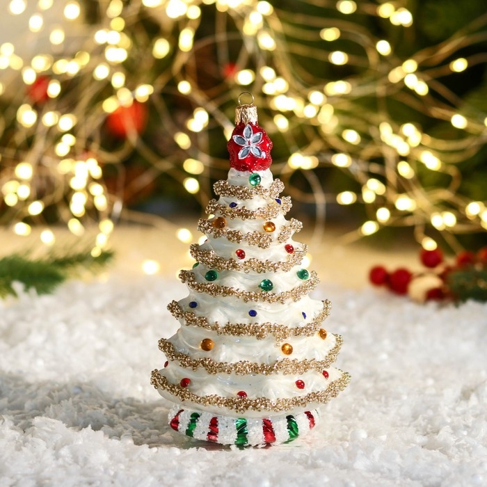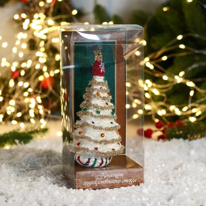 Елочное украшение "Рождественская ёлка" белая, 15 см