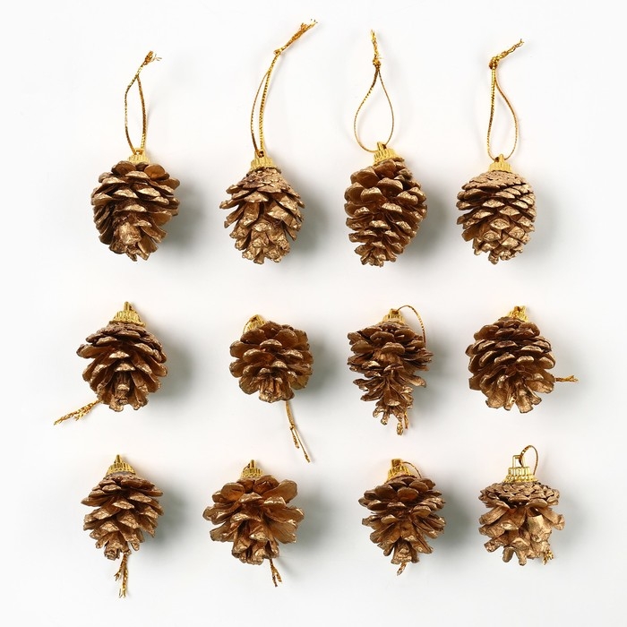 Ёлочные игрушки новогодние «Еловые шишки», на Новый год, цвет золотой