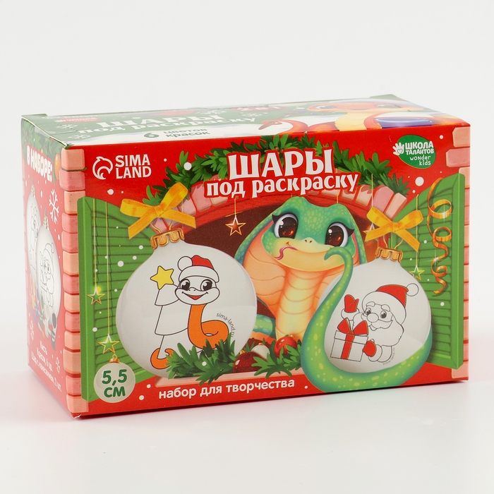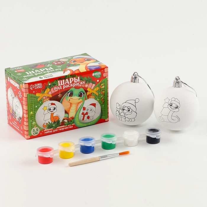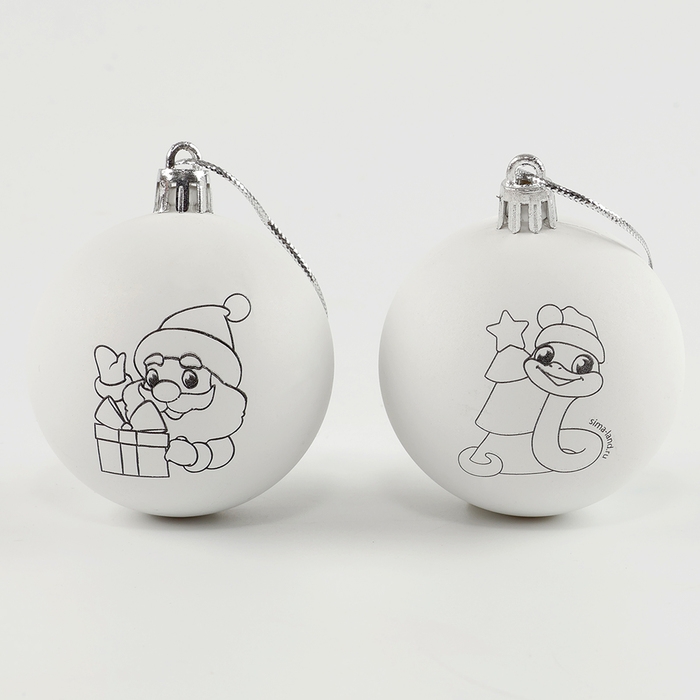 Ёлочные шары под раскраску на новый год «Ногодняя мечта. Змея», d = 5,5 см, 2 шт, новогодний набор для творчества