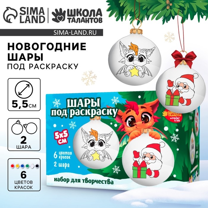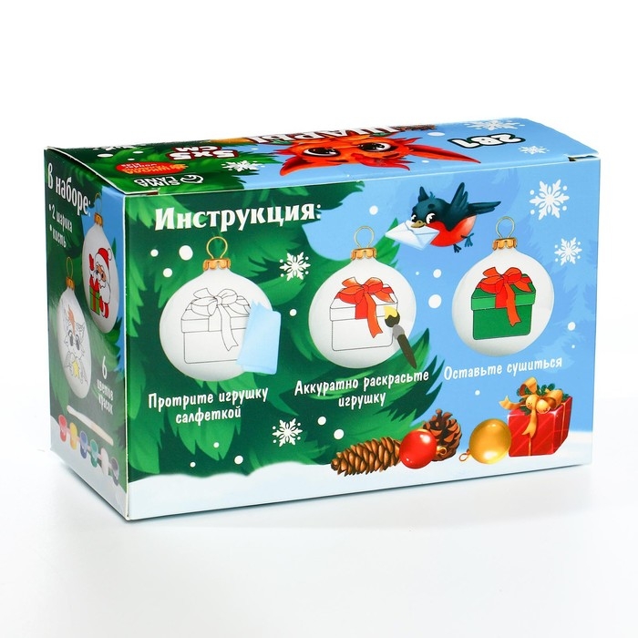 Ёлочные шары под раскраску на новый год «Загадай желание», 2 шт, новогодний набор для творчества
