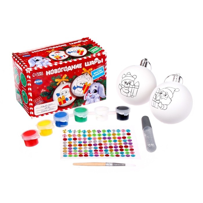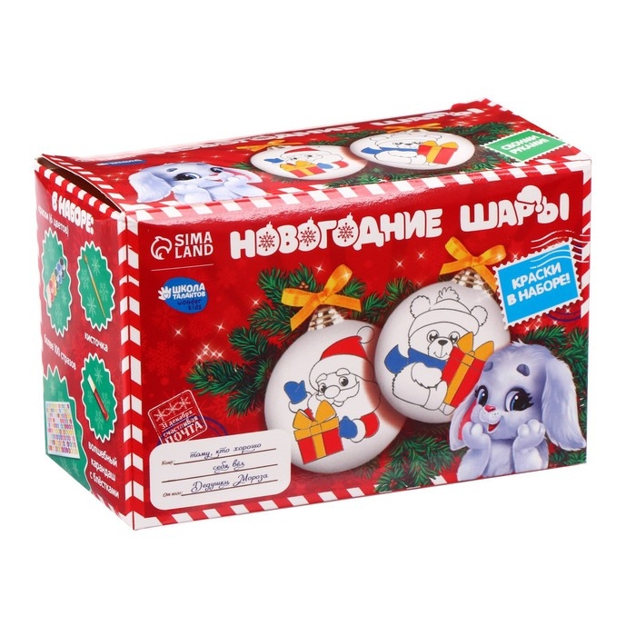 Ёлочные шары под раскраску на новый год «Загадай желание», 2 шт, новогодний набор для творчества