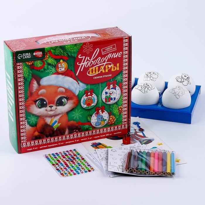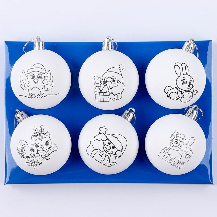 Ёлочные шары под раскраску на новый год «Загадай желание», 6 шт, d = 5,5 см, новогодний набор для творчества