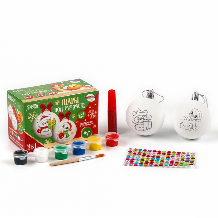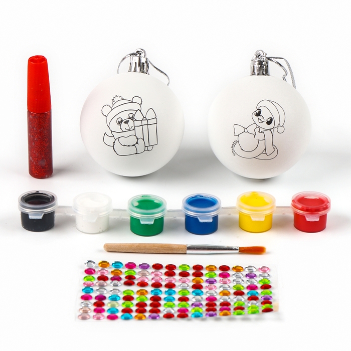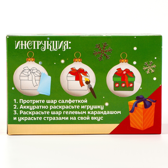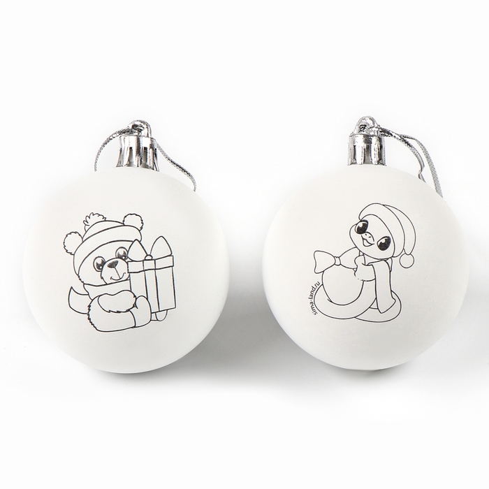 В наборе шары с нанесённым рисунком. Вам остаётся лишь проявить фантазию и раскрасить их на свой вкус. Набор шаров также станет прекрасным подарком друзьям и близким.