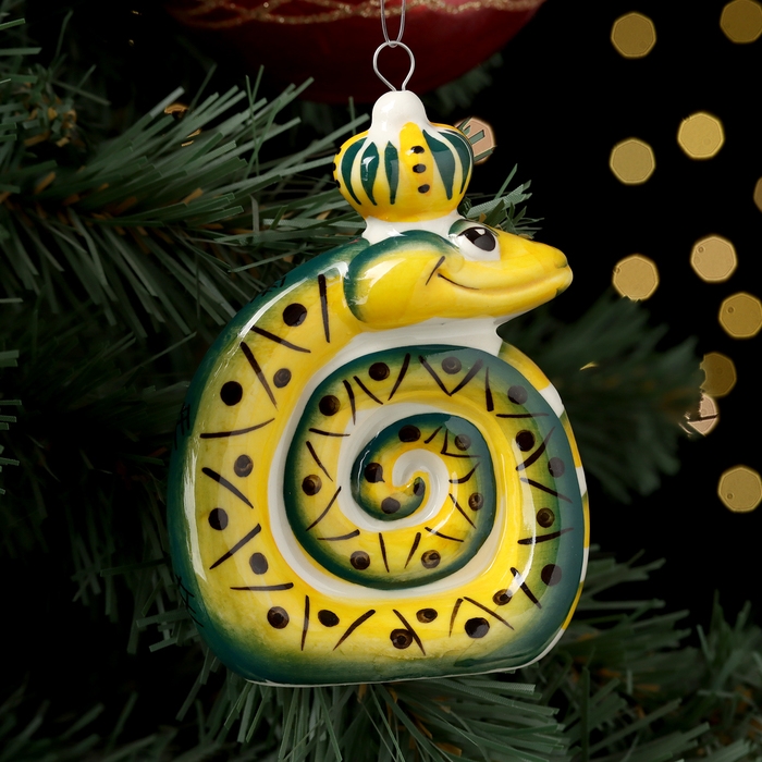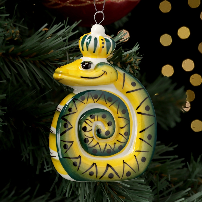 Ёлочный фарфоровая игрушка "Змей", крепление петля, 9 см