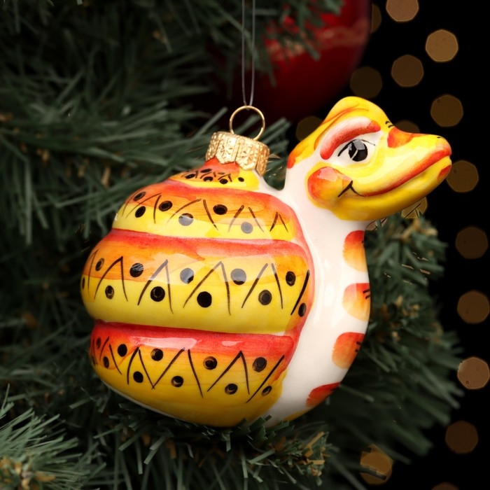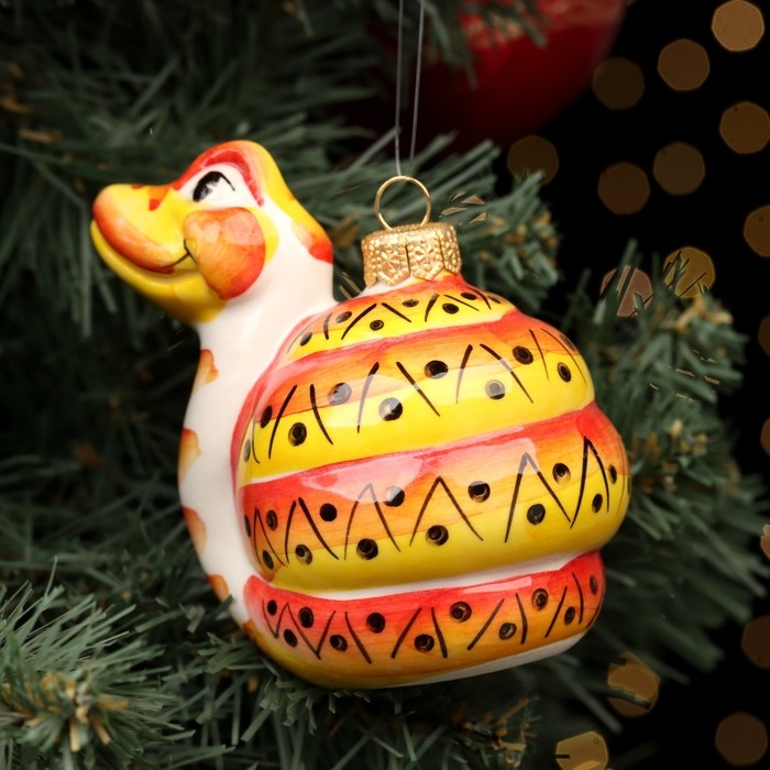 Ёлочный фарфоровый шар "Змей красный", график, 10 см