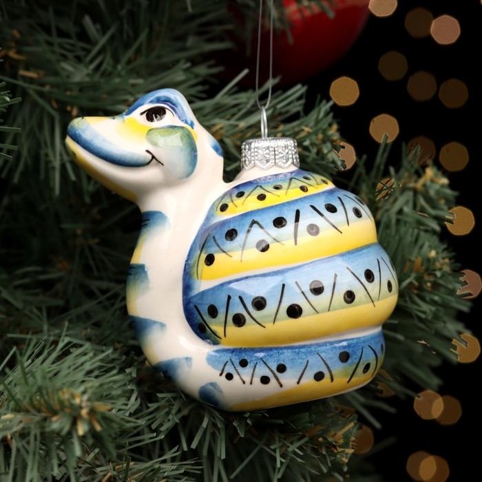 Ёлочный фарфоровый шар "Змей синий", графика, 10 см