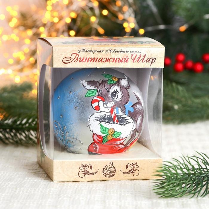 Ёлочный шар d-10 см "Оленёнок с карамелькой"