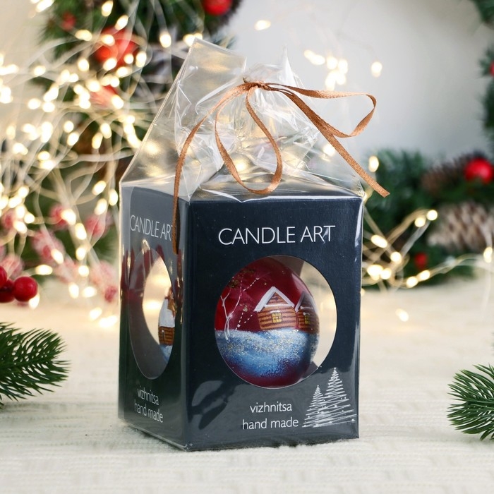 Ёлочный шар d-8 см "Часовня в зимней деревушке" ручная роспись