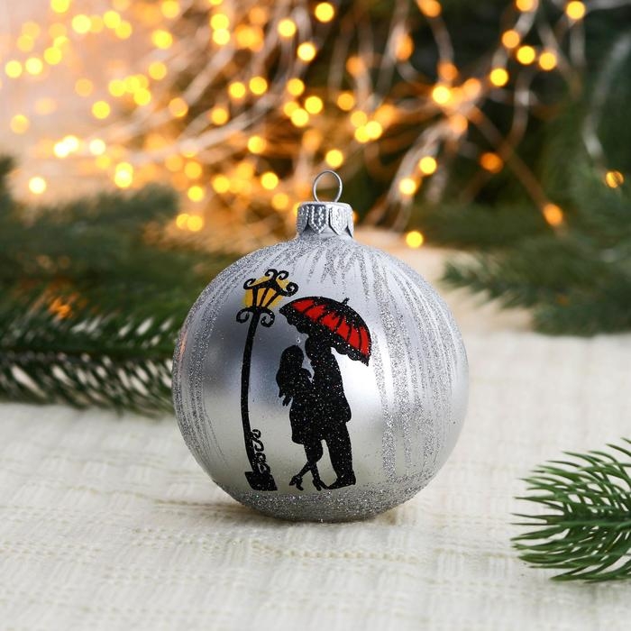 Ёлочный шар d-8 см "Поцелуй под зонтом"