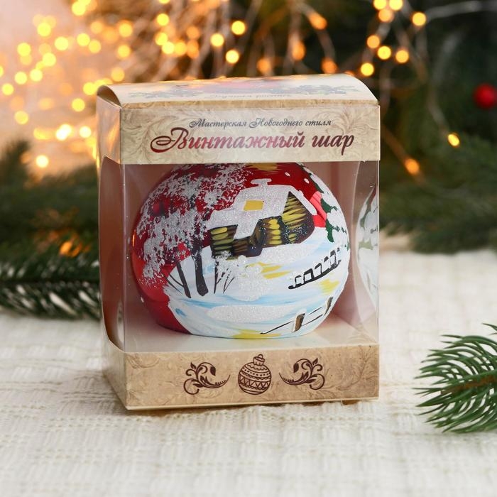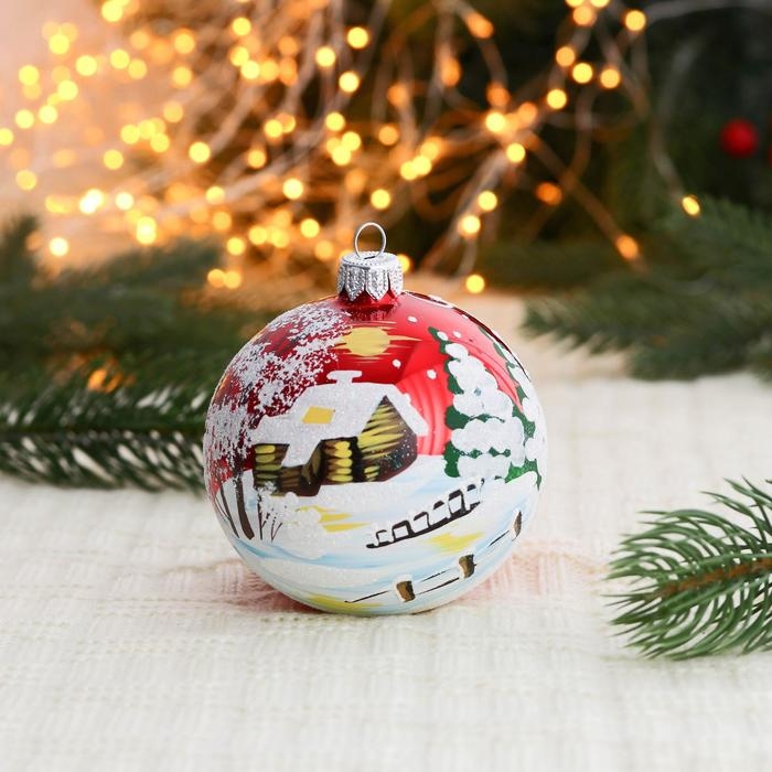 Ёлочный шар d-8 см "Сельский домик"