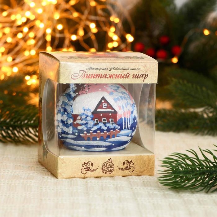 Ёлочный шар d-8 см "Зима на селе"