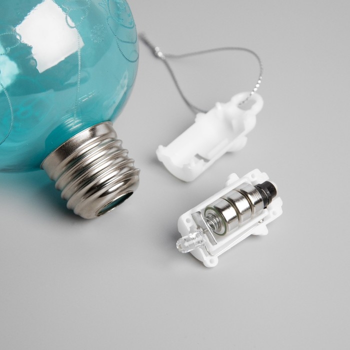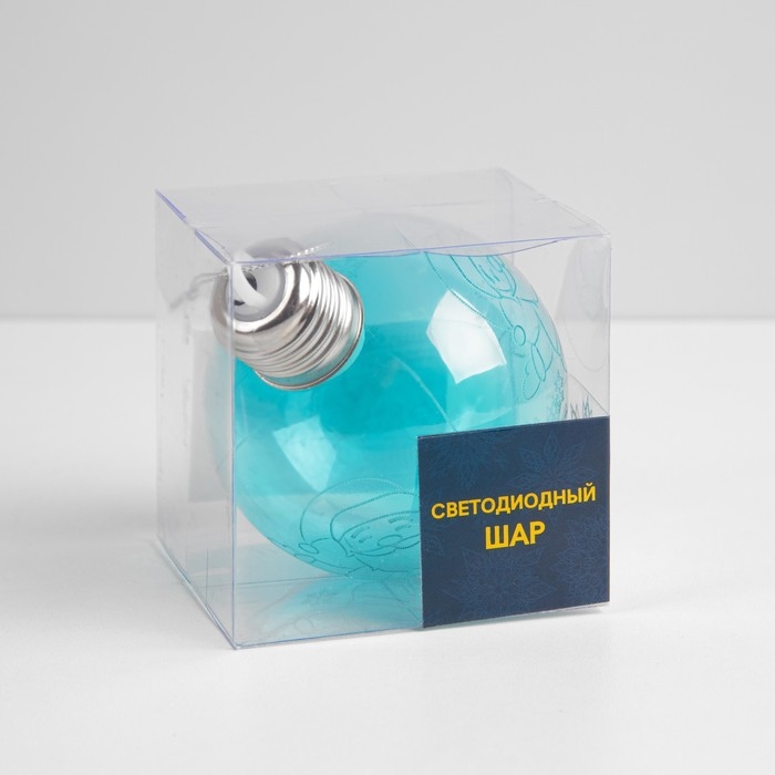 Ёлочный шар «Дед Мороз» голубой, батарейки, 1 LED, свечение тёплое белое