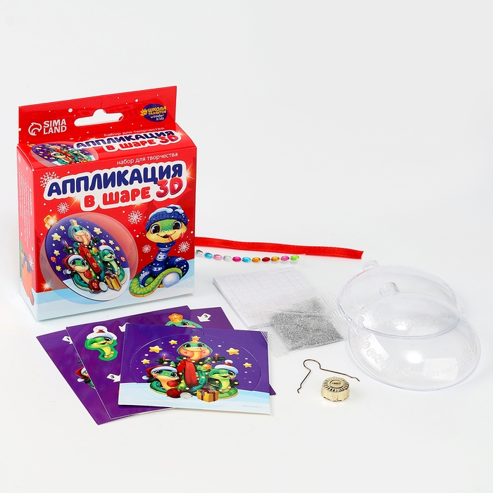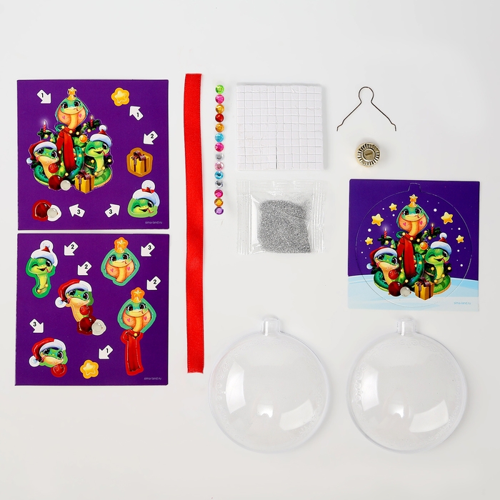 Ёлочный шар своими руками на новый год «Аппликация в шаре. Змея», новогодний набор для творчества, символ года 2025