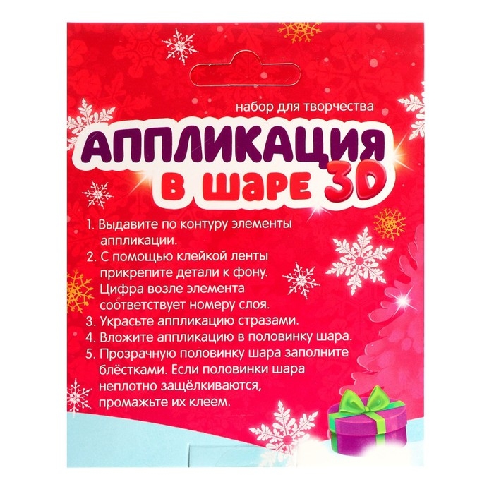 Оригинальный набор для создания 3D аппликации по-настоящему увлечёт и заинтересует ребёнка. Вас приятно удивит, с каким искренним желанием и увлечённостью ваше чадо будет создавать чудесную новогоднюю игрушку своими руками.