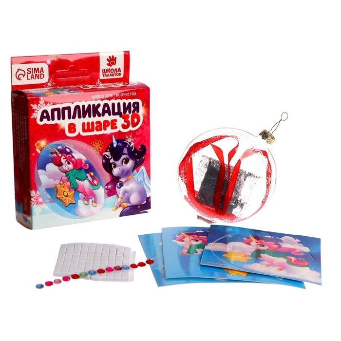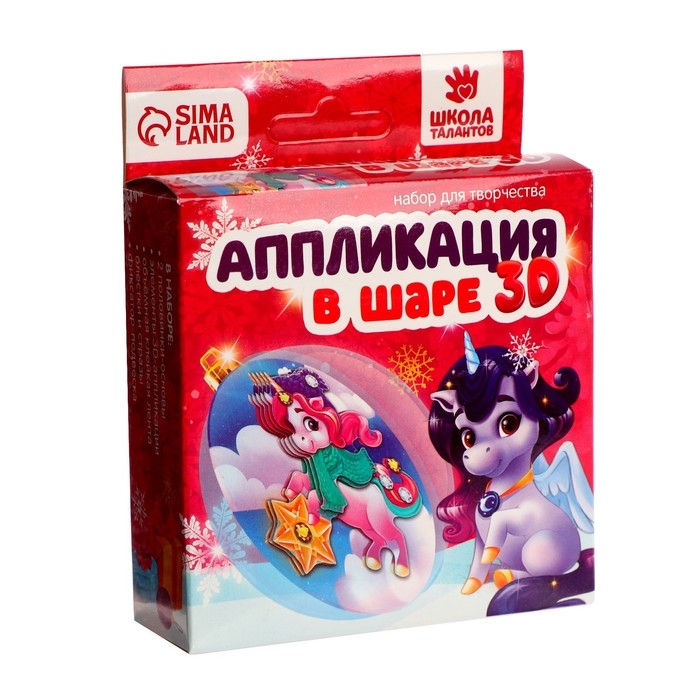 Ёлочный шар своими руками на новый год «Аппликация. Волшебный единорог», новогодний набор для творчества